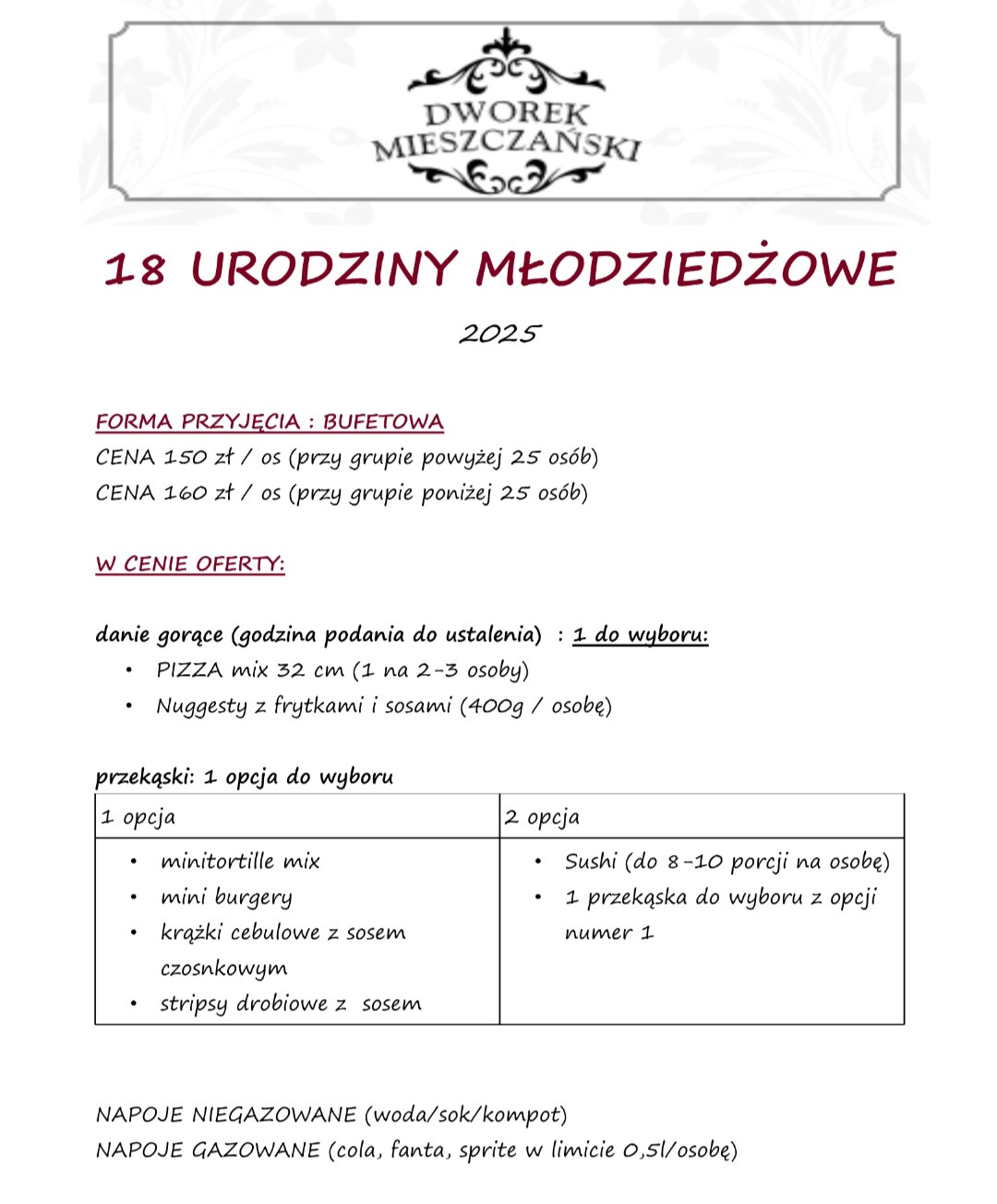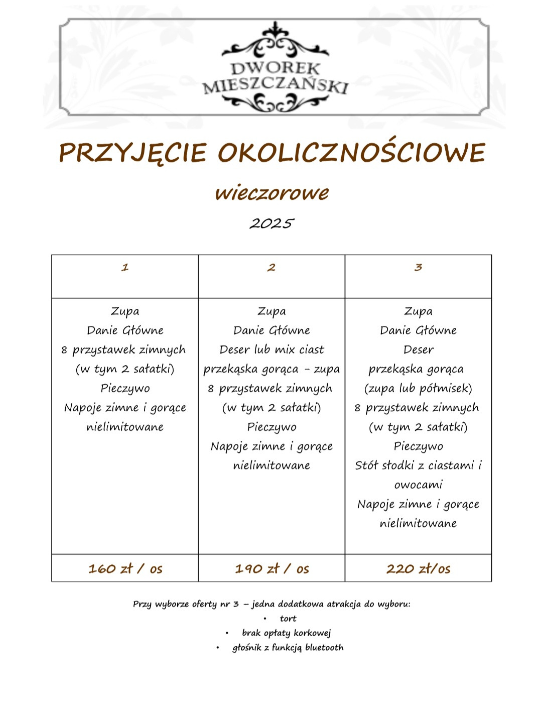 PRZYJĘCIA OKOLICZNOŚCIOWE OFERTY